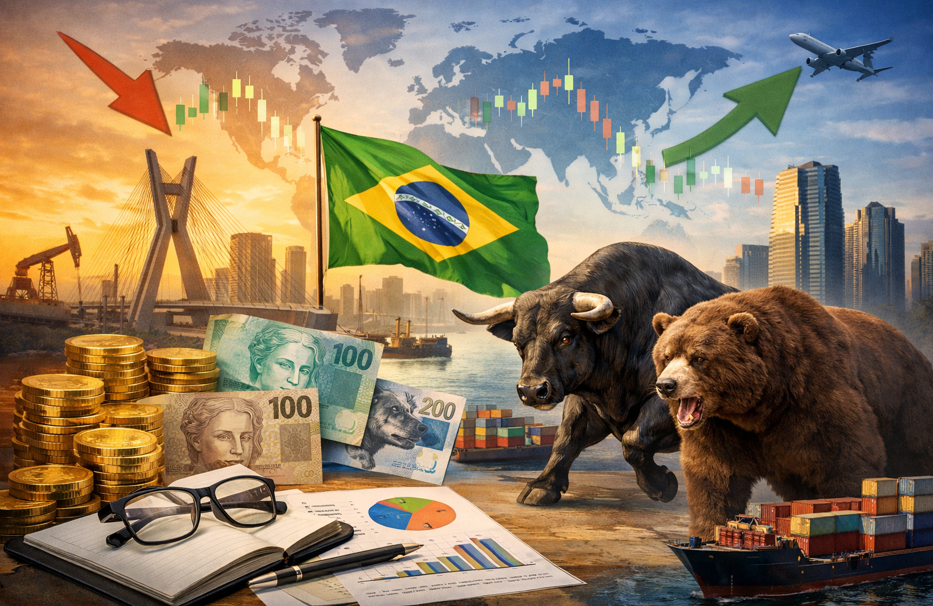 No Brasil, apesar do suporte ainda relevante do capital estrangeiro e de fundamentos relativamente sólidos, o petróleo elevado introduz simultaneamente pressões inflacionárias e fiscais, limitando o espaço para cortes mais agressivos de juros. O Banco Central iniciou o ciclo de flexibilização, mas a trajetória futura dependerá cada vez mais da evolução do cenário externo.