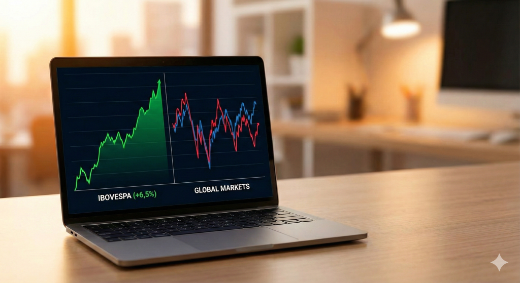 Novembro foi um mês de intensa movimentação nos mercados e na política, tanto no Brasil quanto no cenário internacional. Enquanto o ambiente global foi marcado pela alta volatilidade causada pelo temor de uma possível bolha de IA e pelo shutdown americano, aqui no Brasil o Ibovespa alcançou sucessivos recordes históricos, mesmo sem a entrega de grandes fundamentos positivos — evidenciando o bom momentum do país.