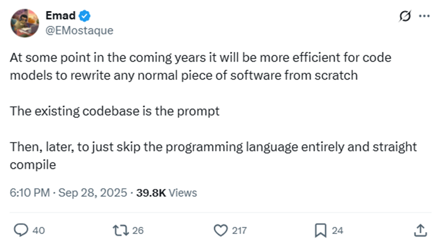 Cito, novamente, a famosa frase de Marc Andreessen, “o software está comendo o mundo”. Para quem acreditou nisso, era inevitável que uma hora o software começasse a se alimentar de si mesmo.