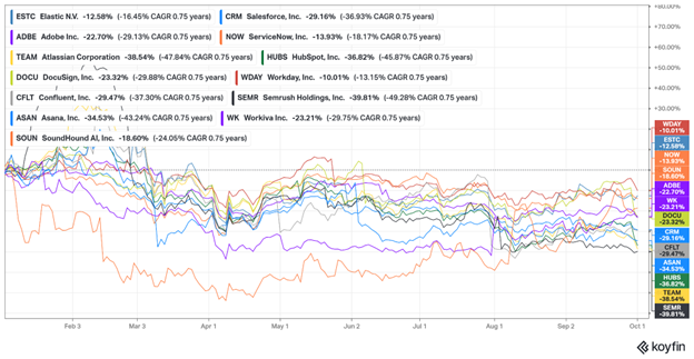 Essa ideia de que o software está se devorando, claro, tem um eco direto no mercado financeiro. Se você acompanha o setor de tecnologia, deve ter notado a preocupação dos analistas com a disrupção das companhias de SaaS, o que ajuda a justificar a queda considerável que observamos em gigantes como Salesforce, ServiceNow, Atlassian e Hubspot.