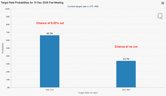 Como já comentei, devido a essa potencial restrição nos dados econômicos, as chances de um corte na taxa de juros de dezembro não estão tão grandes quanto antes: